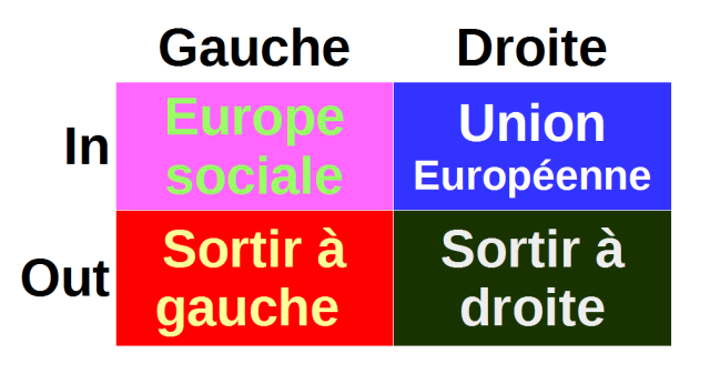 Tout le débat médiatique est fait pour masquer ce carré des scénarios qui appelle à débattre de la sortie à gauche. Tout est fait pour réduire le débat à l’alternative "nationalisme/fascisme" ou "europe" et quand on est de gauche en précisant bien sûr "europe sociale". Le vote anglais est présenté par tous les médias comme un vote raciste, anti-immigrés, et le vote proeuropéen comme le vote des syndicalistes, des intellectuels, des jeunes, et il faut bien le dire quand même, aussi des banquiers.. Amusant comme les syndicalistes sont pour une fois présentés de manière positive... Mais c’est le grand tabou sur ces milliers de syndicats de base associé dans la campagne "left for leave" qui dit avoir mobilisé un tiers des syndiqués ! Comme sur la déclaration des communistes anglais qui considèrent au contraire qu’ils peuvent mieux agir contre l’extrême-droite dans un pays "libre"... Et à vrai dire, il est difficile pour la France de donner des leçons de bataille contre l’extrême-droite !
