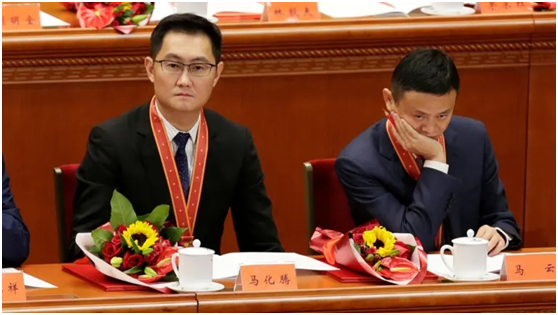 [PHOTO DESCRIPTION]Pony Ma, PDG de Tencentet Jack Ma, président exécutif d’Alibaba, assistent à un événement à la Grande Salle du Peuple à Pékin en 2018. © Reuters