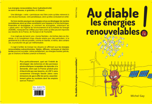 L’auteur milite pour mettre fin au développement, et à l’existence même, de ces EnR, exceptée l’énergie hydraulique (barrages). Cette dernière a aussi ses inconvénients (vallées noyées, risque de rupture) mais elle constitue une merveilleuse source d’énergie et un excellent (mais insuffisant) moyen de stockage d’électricité.