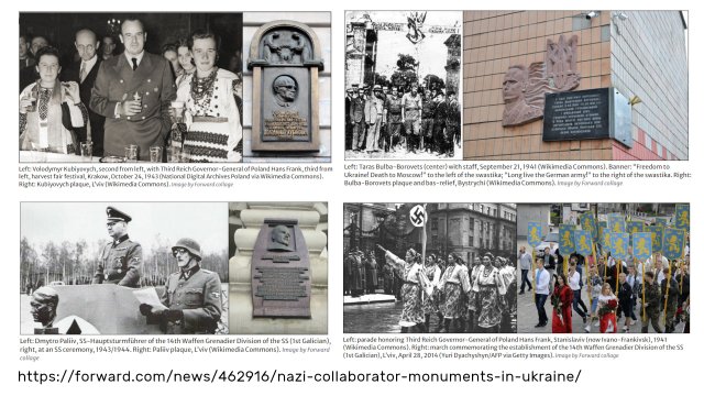 La défaite du Reich se profilant après Stalingrad, l’OUN-UPA commença à s’inventer une histoire « résistante » : clé de la propagande russophobe actuelle, cette légende fut diffusée dans tout l’« Occident » quand la clique Bandera devint officiellement « alliée » contre l’URSS. Ainsi se développa le mythe d’une « résistance des nationalistes ukrainiens » aussi antinazie qu’antibolchevique, qu’entretient désormais la grande presse « occidentale ». Le Monde a consacré les 7 et 8 janvier à Bandera, deux articles à ce héros naïf de l’indépendance ukrainienne. Le premier, « Stepan Bandera, l’antihéros ukrainien glorifié après l’agression russe » poussait l’indulgence à tel point qu’il y en eut, peut-être devant des réactions nombreuses, un second. Le titre fut plus engageant ‑‑ « Guerre en Ukraine : le mythe Bandera et la réalité d’un collaborateur des nazis » ‑‑, pas le contenu : Bandera « luttait par tous les moyens pour libérer l’Ukraine des jougs successifs de la Pologne et de l’Union soviétique ». Il ne collabora avec « l’Allemagne nazie » que pour ce noble objectif qui lui fit voir en Hitler « un allié possible pour lancer la révolution nationale ukrainienne contre l’oppresseur soviétique qui avait orchestré, entre autres atrocités, la grande famine de 1932-1933, l’Holodomor, décimant de 3 à 5 millions d’Ukrainiens. » Il avait donc bien des excuses.