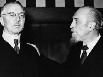 Accusé d’avoir participé à la conduite d’une « guerre d’agression », Hjalmar Schacht fut acquitté à Nuremberg en 1946, bien qu’il ait favorisé l’accession au pouvoir d’Hitler et qu’il ait conçu et mis en œuvre le système économique fasciste qui permit la mobilisation de guerre. Impliqué dans le complot raté pour assassiner le Führer, en 1944, il passa le reste de la guerre en prison. Par la suite, une cour de dénazification le condamna à huit ans de camp de travail, mais il retrouva la liberté en 1948, après avoir gagné son procès en appel.