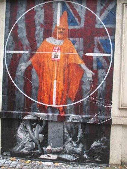 Ayant démonté l’implacable machine, nous avons décidé de la gripper et c’est ainsi que je me suis déplacée à Londres pour assister à toutes les quatre audiences d’extradition de la Westminster Magistrate Court du 20 septembre au 21 octobre dernier. Au passage j’ai beaucoup appris sur les compagnons d’infortune et de circonstance de Julian Assange – les extradés polonais et autres est-européens, jugés en leur absence, sans avocats et sans interprète, souvent sans comprendre ce qui se passe sous le regard résigné de leurs familles muettes dans le public. La vie du prolétariat est-européen émigré en Grande Bretagne défilait sous mes yeux alors que j’attendais que l’administration britannique appelle le prisonnier Julian Assange à la barre. A force de protester contre les nombreuses violations de droits, les lettres qui n’arrivent jamais, les colis non livrés, les protestations auprès de l’administration pénitentiaire sans réponses, nous avons enfin obtenu l’inespéré : la "justice" britannique a été obligée de présenter l’homme Assange physiquement. De prouver qu’il n’a pas encore été assassiné à force de tortures. Car elle en a la responsabilité pénale, l’administration britannique, puisqu’il est privé de liberté et enfermé dans ses prisons. La torture est un crime voyez-vous, et les assassinats extrajudiciaires aussi. On peut échapper aux molles remontrances d’un comité de l’ONU mais sur le long terme, la colère du peuple peut être terrible. Les Gilets Jaunes prenant d’assaut le fourgon policier transportant Julian Assange, donnent aux élites anglaises un avant-goût de ce que peut être la Révolution.