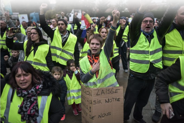 Au delà de sa spontanéité après des décennies de défaites face à l’offensive libérale et eurocratique pour maximiser le profit capitaliste à l’échelle de l’Union Européenne, le mouvement des Gilets Jaunes remet au goût du jour les occupations des ronds-points, les mobilisations variées la semaine ouvrable et les manifestations dans les grandes villes le week-end. Ses secteurs les plus avancés acceptent la main tendue des syndicalistes de classe et appellent même à bloquer l’économie capitaliste pour faire céder Macron, dont des centaines de milliers de manifestants, bravant les interdits et sillonnant les lieux de pouvoir, exigent la démission.