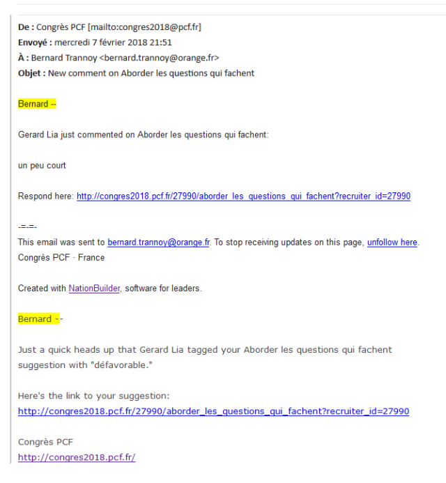 Un militant a déposé une contribution préparatoire au congrès extraordinaire de 2018. Il a reçu cette réponse surréaliste et se demande ce qu’elle veut dire...