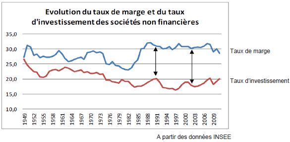 Les statistiques sont claires à ce sujet : la part des investissements productifs dans l’économie est dé-corrélée du niveau des marges des entreprises.