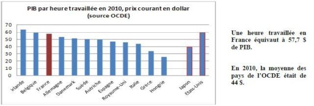 Mais il est aussi important de tenir compte de la productivité du travail. Et sur ce plan l’heure de travail réalisée sur le territoire français est parmi les plus productives. Selon l’OCDE, la France est dans le trio de tête des pays européens avec la Belgique et l’Irlande.