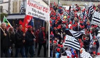 Non, il ne faut pas opposer les petits patrons bretons, les petits transporteurs, les agriculteurs, et les travailleurs de l’agro-alimentaire, il faut au contraire travailler à unir autour de la classe ouvrière la plus grande part possible des couches sociales non oligarchiques ! Nous pouvons subvertir ceux qui ont tenté de faire du symbole des bonnets rouge un symbole réactionnaire et s’en saisir au contraire comme symbole de rassemblement populaire contre le système. La CGT de Bretagne a raison de ne pas laisser le patronat instrumentaliser la crise de l’emploi agro-alimentaire pour faire défiler les travailleurs licenciés derrière le patronat et la droite sur l’écotaxe, mais, vu de loin, et donc dans le respect des décisions militantes sur place, j’ai le sentiment que l’objectif devrait être à l’inverse de prendre la tête du mouvement des bonnets rouges, en imposant l’intérêt des travailleurs et des familles bretonnes comme question centrale de ce mouvement. D’autant qu’il ne faudrait pas permettre au gouvernement non plus de manifester avec les victimes des restructurations, restructurations qu’il laisse faire, au mieux, et de toute façon, auxquelles il contribue avec sa politique économique et européenne.