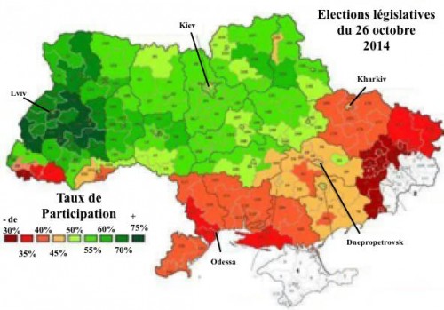 Ce qui est nouveau, c’est l’apparition de zones de très forte abstention au Sud-Ouest de l’Ukraine, dans les régions frontalières avec la Hongrie et la Slovaquie. Cela correspond à la crainte des populations de ces régions vis-à-vis du gouvernement de Kiev. Ces populations ne sont pas « ukrainiennes » d’origine ; le comportement des groupes extrémistes (Svoboda et Pravy Sektor) et la relative impunité dont ils jouissent, les inquiètent. Sur le reste du territoire sous le contrôle du gouvernement de Kiev, on retrouve une participation de 55% à 60% que l’on avait constatée lors des précédents scrutins.