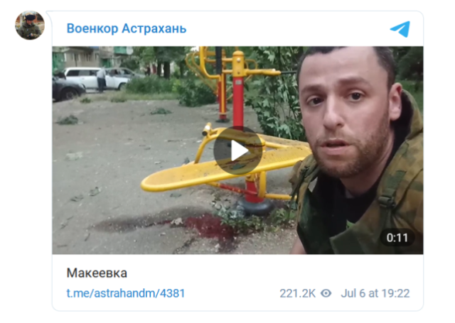 Et comme si le fait de tuer une fillette du Donbass de plus ne suffisait pas, le 6 juillet 2022 en fin d’après-midi, l’armée ukrainienne a tiré sur le centre de Makeyevka avec des lance-roquettes multiple Ouragan de 220 mm, frappant une aire de jeux où jouaient des enfants. Les sous-munitions des roquettes Ouragan ont projeté des éclats partout dans cette cour d’immeuble.
