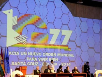 Un événement considérable s’est déroulé ce week-end à Santa Cruz en Bolivie : le sommet du G77 + la Chine, qui propose de mettre sur pied un nouvel ordre mondial plus juste, fondé sur une vision différente du développement, selon laquelle les pays du Sud maitriseraient leurs ressources naturelles et vivraient en harmonie avec la planète.