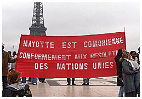 Rappelons que sur les 17 « territoires non autonomes » c’est-à-dire que les Nations-Unies considèrent comme devant être décolonisés, deux (la Kanaky et la Polynésie) sont occupés par la France. L’île de Mayotte pour sa part est considérée comme partie intégrante des Comores par la résolution 3385 du 12 novembre 1975 de l’assemblée générale des Nations Unies qui énonce : « la nécessité de respecter l’unité et l’intégrité territoriale de l’archipel des Comores, composé des îles d’Anjouan, de la grande-Comore, de Mayotte et de Mohél ». (1)