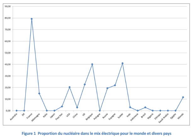 La France est le pays ayant la plus forte proportion de nucléaire dans son mix électrique comme on peut le voir sur la Figure 1. Seule avec la Russie, elle contrôle l’ensemble du cycle nucléaire.