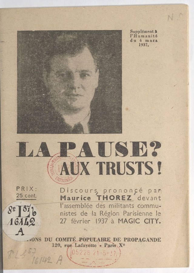 Discours prononcé par Maurice THOREZ devant l’assemblée des militants communistes de la Région Parisienne le 27 février 1937 à MAGIC CITY.