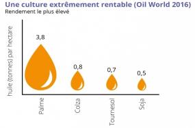 Par ailleurs, pour rester sur le chapitre déforestation, il va s’en dire que toute activité humaine, dont l’agriculture, a un impact sur l’écosystème. Cependant le palmier à huile ayant le plus grand rendement à l’hectare et ce, dans des proportions importantes, 3,8 tonnes à l’hectare, contre 0,5 pour le soja, sa culture est infiniment moins destructrice.
