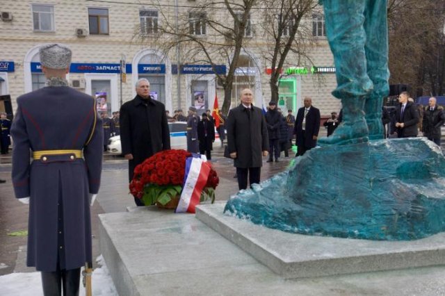 Le symbolisme face à la statue d’un commandant en chef regardant vers l’horizon en tenue de combat était bouleversant. À cela s’est ajouté les quatre jeunes Russes, en uniforme, qui ont déposé avec respect deux couronnes de roses très rouges, au pied du monument.