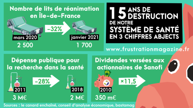 La fameuse baisse du nombre de lits d’hôpital est liée à ces objectifs d’économie visant à mettre la Sécurité sociale au pas. Les macronistes aiment dire que le système de santé avait déjà été très abîmé par les gouvernements précédents. C’est vrai : sous Nicolas Sarkozy, un ministre de la Santé nommé Xavier Bertrand a largement contribué à supprimer des lits d’hôpital : 46.500 lits en moins durant le quinquennat. C’est aussi lui qui a mis en œuvre une mesure qui a changé le mode de financement de l’hôpital et organisé la course aux soins « rentables » : la Tarification à l’Activité (T2A). Malgré le Covid et alors qu’on nous parle de 5e vague, le gouvernement actuel n’a pas réinvesti dans l’hôpital public.