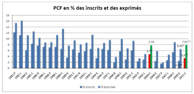 [3] Le score du seul PCF aux régionales de 2004 et 2010 ne peut être pris en compte à cause du nombre important de liste d’union au 1er tour