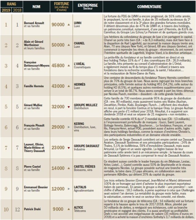 Les 500 plus grosses fortunes de France Tiré du magasine Challenges