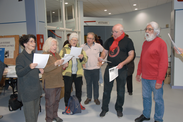 La séance du vendredi s’est conclu par une chanson pour ce 11 novembre qui célèbre la fin de la première guerre mondiale. Comme plusieurs militants l’avaient fait après la cérémonie officielle à l ’ancien cimetière de Vénissieux le matin , nous avons chanté la « chanson de Craonne », cette chanson des soldats et mutins qui dénoncaient la guerre..