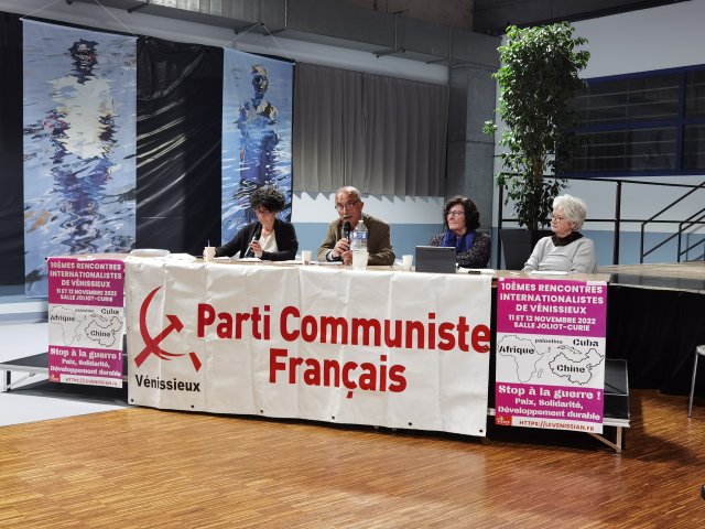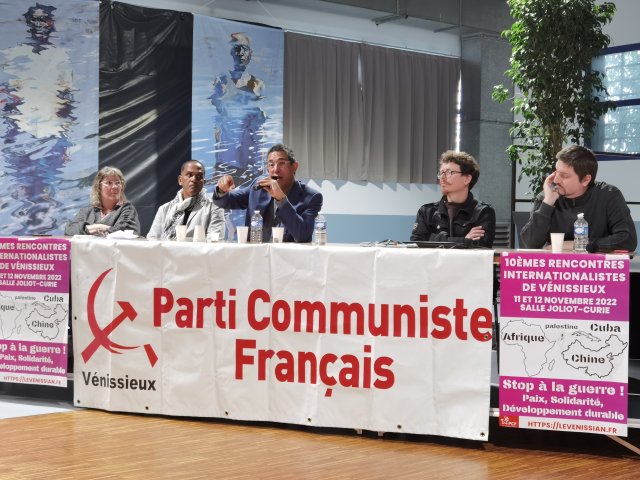 – Introduction de la séance par Pierre-Alain Millet, élu communiste de Vénissieux, avec la lecture d’une déclaration aux rencontres de Gilbert Kouessi, représentant du parti communiste du Bénin, et la lecture d’une déclaration du parti communiste du Soudan