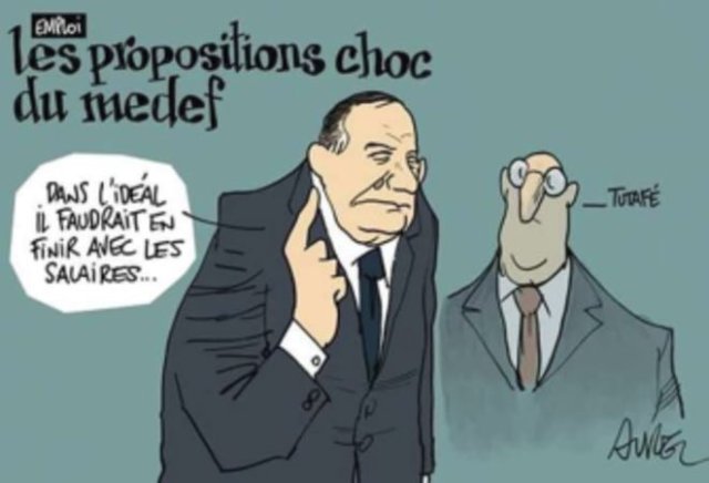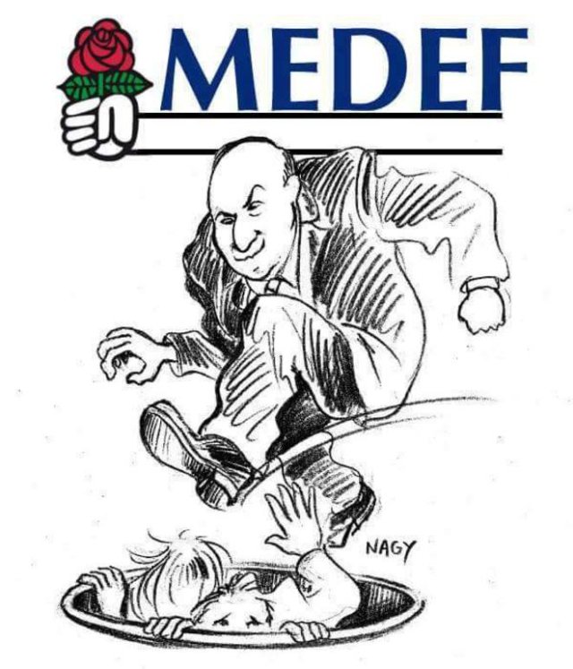 Le lien avec les auteurs (PS-Medef) est largement décliné :