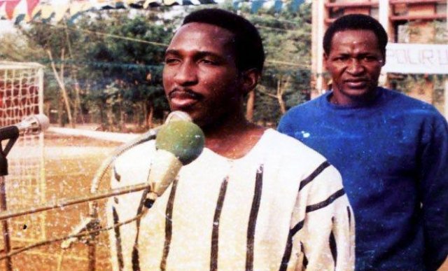 Thomas Sankara, habillé du traditionnel Faso Dan Fasi, décrété symbole du patriotisme burkinabé.