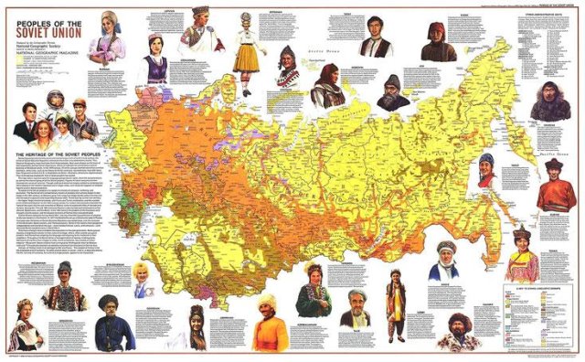 Carte des principales nationalités peuplant le territoire soviétique.