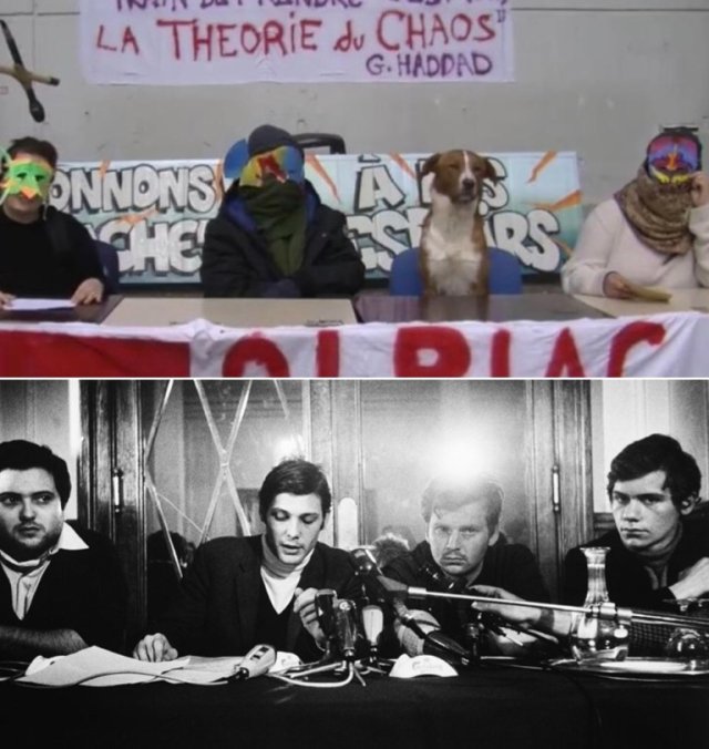 Alors aujourd’hui, pendant ce conflit des cheminots qui se battent pour le service public de tous, ce combat des employés de Carrefour qui relèvent la tête, quand j’entends ces appels à la "convergence", quand je vois ces petits-bourgeois fragiles et pleurnicheurs, en appeler à la police qu’ils vilipendent par ailleurs, lorsqu’ils aperçoivent le front bas d’un identitaire, j’ai vraiment du mal. Quand j’entends leurs discours débiles, leurs revendications et leurs slogans ineptes, les mêmes que ceux de leurs aînés, cela ne me rajeunit pas, mais je suis contraint de constater que les mêmes causes produisent les mêmes effets. Il n’y a rien à attendre de ces gens-là, parce que je sais bien qu’on les retrouvera dans quelques années aux places occupées par tous les imposteurs joufflus qu’on nous ressort des tiroirs pour le 50e anniversaire.