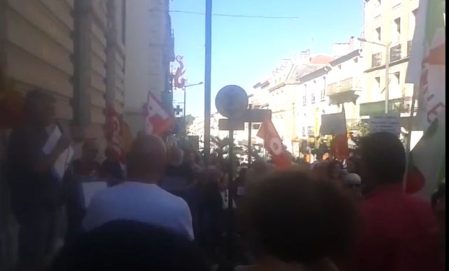 C’est accompagné de cris hostiles à l’austérité et à la troïka et de bannières déployées que le défilé a atteint l’objectif. Là les représentants des organisations qui avaient appelé à cette initiative ont pris la parole. Paul Barbazange a rappelé qu’en 2005 la victoire du NON avait été volée par les opérations politiciennes conduites par la droite et la social-démocratie. Il a souligné la nécessité d’une action de masse et claire quant à l’analyse de ce qui est en cause avec la structure européenne que nous subissons.