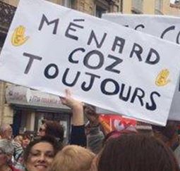 Au micro les slogans scandés sont sensiblement différents de ceux qui ont cours dans les manifestations plus syndicales. « Pas de facho dans nos quartiers, pas de quartier pour les fachos » revient souvent ! On peut entendre aussi « Black, blanc, beur, c’est nous la France » ou quelque chose d’approchant. Référence plus historique, on a droit aussi à « Nous sommes, nous sommes, les fils de Jean Moulin ! ». Parodie encore de Ménard « Vous n’êtes pas les bienvenus dans notre ville, fachos rentrez chez vous »…