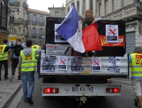 Le cortège qui s’est formé sur la place du 14 Juillet était sensiblement différent des défilés classiques auxquels nous sommes habitués dans notre ville avec l’engagement contre la loi El Khomri. Cette fois, c’était perceptible, le politique l’emportait sur le syndicalisme, même si la CGT était très présente avec notamment son service d’ordre, très efficace.