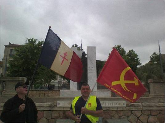 Les citoyens avaient fait preuve de créativité, confectionnant des panneaux, des banderoles, brocardant les « Oz ta droite » d’un dangereux politicien qui surfe sur la crise pour se tailler une dimension nationale dans le cloaque des idéologies nauséabondes. Hugues et Jean-Claude se sont fait portraiturer devant la statue de Jean Moulin, l’un tenant un drapeau tricolore avec la Croix de Lorraine, l’autre celui du parti communiste.