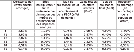 Source : Jacques Sapir, “L’impact d’une sortie de l’Euro sur l’économie française”, billet publié sur le Carnet Russeurope le 05/03/2013, Évaluation de la réduction du chômage à partir des données de la DARES et du Ministère du Redressement Productif.