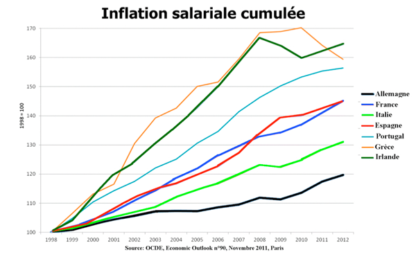 Il serait ainsi bien plus intéressant de dire d’emblée que, oui, la zone Euro nous étrangle (ainsi que les autres pays de l’Europe du Sud [4]), que, oui, une dévaluation serait un moyen bien moins coûteux de rétablir notre compétitivité, et que, oui, nous avons intérêt à ce que la zone Euro, dans sa forme actuelle, disparaisse.