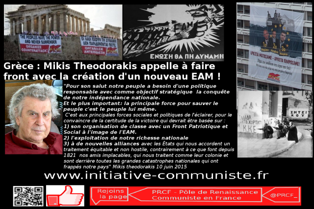 grece mikis theodorakis eamEt voici que les événements m’ont donné raison. ( Lire ici : Grèce : Mikis Theodorakis appelle à l’organisation d’un Front patriotique et social, à un nouvel EAM)