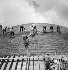 Commentaires d’un reportage de l’époque : Le Congrès national a une surface de plus de 40.000 m2. L’ensemble aura 800 m de longueur. Plus de mille ouvriers travaillent à la construction du Congrès.