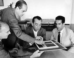 J’ai fait le siège du Parti communiste. J’ai implanté le bâtiment comme ça. Il y eut le problème de la grande salle de la Classe Ouvrière, l’auditorium. Si je l’avais faite au niveau du terrain existant, la coupole aurait été très grande. Alors, je l’ai enterrée. Le hall de la Classe Ouvrière se trouve en dessous, et la coupole ressort comme ça (il fait un schéma au tableau), de sorte que vue du dessus, elle paraisse petite. Je voulais montrer ce que l’on oublie parfois, qu’il pouvait exister une bonne relation entre les volumes et les espaces vides. Il importait à l’extérieur de travailler comme ça. C’est tout le problème de la beauté architecturale.