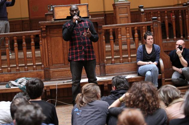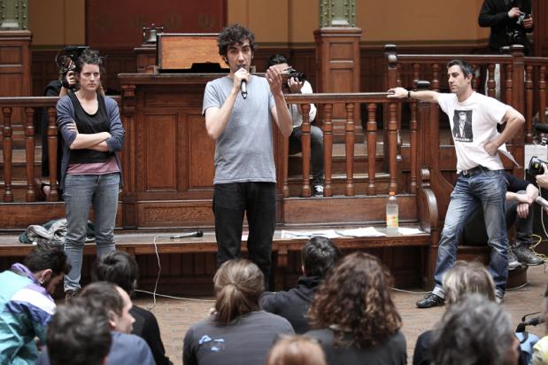 Mercredi soir, cinq cent personnes se serrent sur les bancs de bois de la salle Ambroise Croizat. La Fanfare invisible ouvre la réunion, qu’introduit Arthur, un de ceux qui ont imaginé "Nuit debout" : « C’est le moment de réfléchir à notre stratégie. On a occupé. Qu’est-ce qu’on fait maintenant ? »