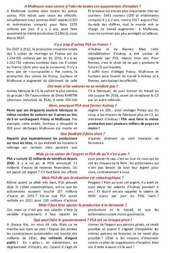 Dans le tract de la CGT de PSA, les réponses aux questions des travailleurs... de PSA et d’ailleurs