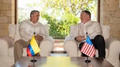 Ivan Duque, le nouveau président de Colombie sous haute influence d’Alvaro Uribe, réuni récemment avec le Secrétaire d’Etat états-unien Mike Pompeo. Lire aussi Etats-Unis et Colombie entendent rétablir la « démocratie » au Venezuela