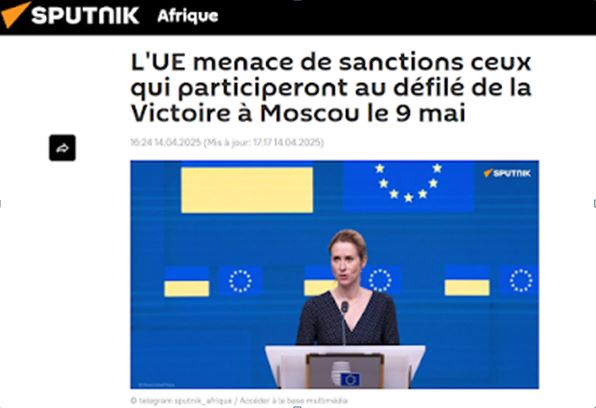 Il est donc tout à fait logique, que pour les 80 ans de la Victoire, l’UE ne puisse accepter les grandes cérémonies prévues à Moscou, où doivent prendre part des chefs d’État et de gouvernement étrangers. Ainsi, la responsable de la diplomatie européenne de menacer directement ceux, qui auraient l’idée de mettre les pieds « chez l’ennemi » :