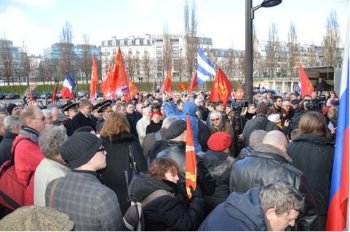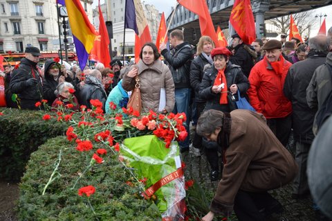 A l’issue des discours, les manifestants étaient invités à déposer symboliquement un œillet rouge sur la misérable petite plaque commémorative apposée place Stalingrad donnant ainsi la mesure du mépris de la bourgeoisie française pour le sacrifice des soviétiques.
