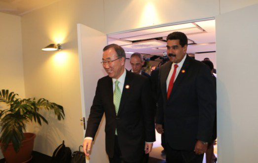 Le président Maduro (Venezuela) accompagné du Secrétaire Général de l’ONU Ban Ki-Moon, lui aussi présent au sommet de la CELAC.
