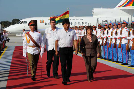 Dilma Roussef (Brésil) et Evo Morales (Bolivie) à leur arrivée à Cuba.