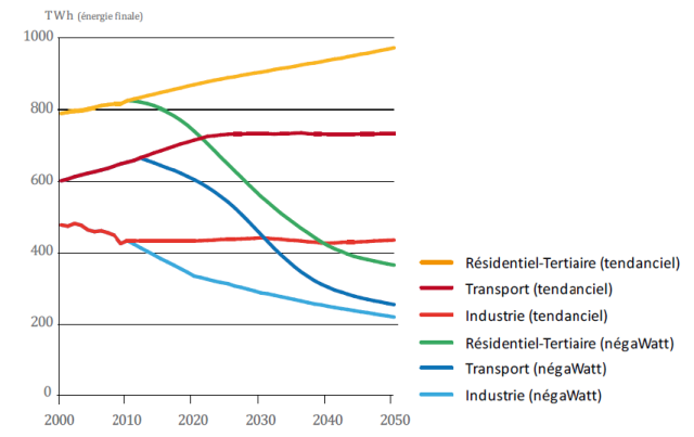 NégaWatt : évolution tendancielle sur 50 ans