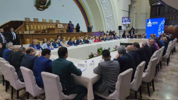 2. A la suite de l’« Accord des Barbades » (3), cosigné par le gouvernement du Venezuela et l’opposition de droite en octobre 2023, 40 partis d’opposition ou pro-chavistes – soit 97% des partis politiques -, et 155 délégué(e)s des principaux secteurs économiques, culturels, religieux et sociaux du Venezuela, se sont réunis pendant plusieurs jours à Caracas pour définir une feuille de route électorale. Cet accord, relu et signé par toutes les parties le 4 mars 2024, a permis au Centre National Électoral (CNE) de fixer la date des présidentielles au 28 juillet (photos).