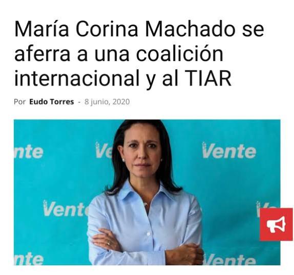 En 2014, on la retrouve à l’origine de l’opération « La Salida » (la sortie) qui consistait à déchaîner la violence pour renverser par la force Nicolas Maduro. Le bilan s’élève à plusieurs dizaines de morts parmi policiers et manifestants. En 2017, lors d’autres émeutes d’extrême droite, un jeune homme noir de 22 ans est lynché, poignardé puis brûlé vif parce que « noir donc chaviste » (17). La même année, des bombes sont utilisées pour attaquer des policiers et des câbles de fer sont tendus dans les rues pour décapiter les motards de la police. En 2019, elle participe activement à l’instauration du président fantoche, non élu mais nommé par Donald Trump, Juan Guaido. Les 31 tonnes d’or du Venezuela au Royaume-Uni, la filiale pétrolière états-unienne CITGO et beaucoup d’autres actifs de l’État vénézuélien sont volés par un fake-président adoubé avec empressement par des présidents comme Emmanuel Macron. Machado fait partie de son clan. Elle applaudit le blocus occidental des aliments et des médicaments, et se prononce publiquement en faveur d’une intervention militaire menée par les États-Unis, en invoquant l’activation du traité TIAR.