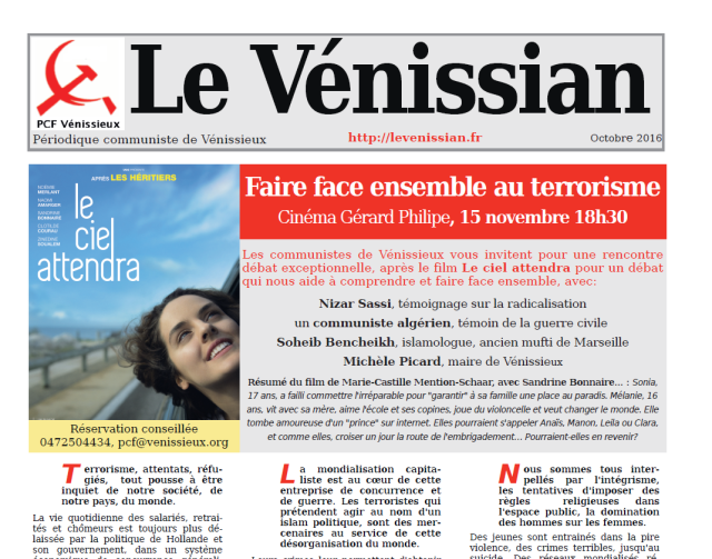 Les communistes de Vénissieux vous invitent pour une rencontre débat exceptionnelle, après le film Le ciel attendra pour un débat qui nous aide à comprendre et faire face ensemble, avec :