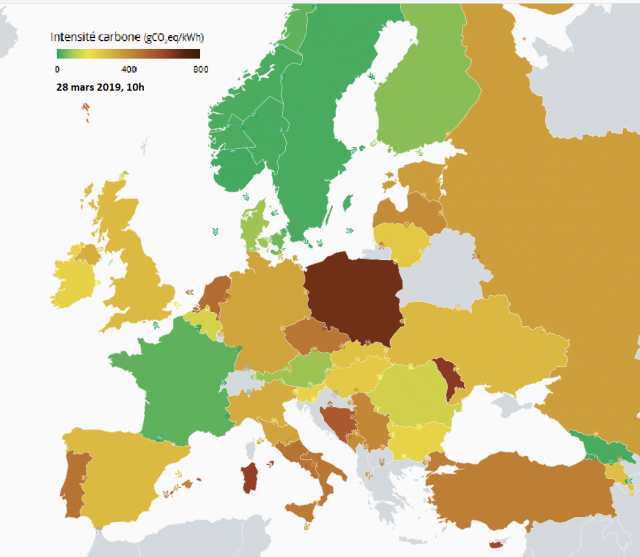 C’est pourquoi d’ailleurs la comparaison entre la France et l’Allemagne sur les émissions de gaz à effet de serre est terrible... pour les allemands ! Selon le site electricitymap.org, l’Allemagne émettait en pleine canicule le mercredi 26 juin six fois plus de gaz à effet de serre que la France.
