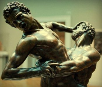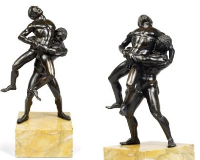 Hercule soulevant le géant Antée pour l’empêcher de reprendre pied.